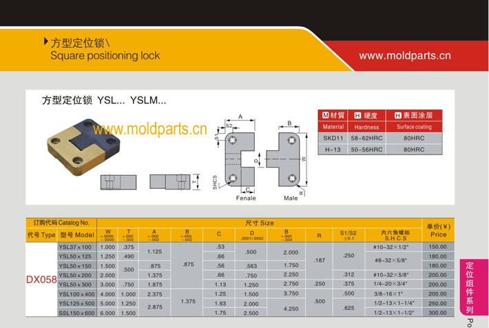 东莞易顺模具科技有限公司专业生产Progressive标准方形定位锁,Progressive标准方形定位锁的材质、热处理、硬度、标准、型号等详情说明和介绍,您可以通过本页面下单留言或者发送询/报价